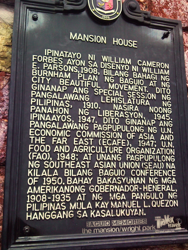 The Mansion House, or simply The Mansion, is a popular tourist destination in Baguio because of its historical roots in the past. It was built by William Cameron Forbes according to the design by William Parsons in 1908, as a part of the bigger Burnham Plan of Baguio and the City Beautiful Movement. It was devastated in 1945 and was rehabilitated two years after. Now, Baguio’s The Mansion is a rest house of the President of the Philippines. The Wright Park on the other hand is park developed in honor of Governor General Luke E. Wright.