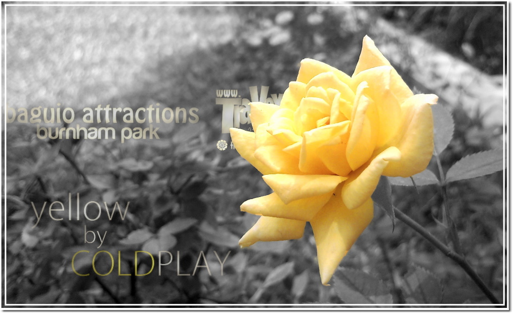 | A yellow rose planted in the bushes of Rose Garden in Burnham Park. |