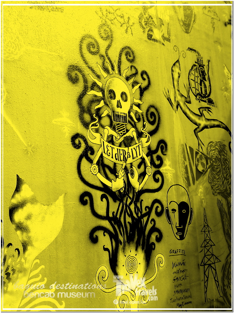 Bencab Museum in Baguio City is a museum dedicated to the finest of the arts and the most artistic of the crafts in Baguio. It is a home of well painted art galleries and a realization of gifted hands which can draw things out of bare imagination. On the other hand, graffiti are writings and drawings painted or posted on a wall surface without authorization. You can see a lot of them on public walls and suburbs but well you don’t have to preach the one who painted it on a wall adjacent to Bencab Museum; it’s a part of the museum itself and as I have said, it’s a Baguio graffiti that stands out of the rest because of its distinct feature of culture and imagination merged together.