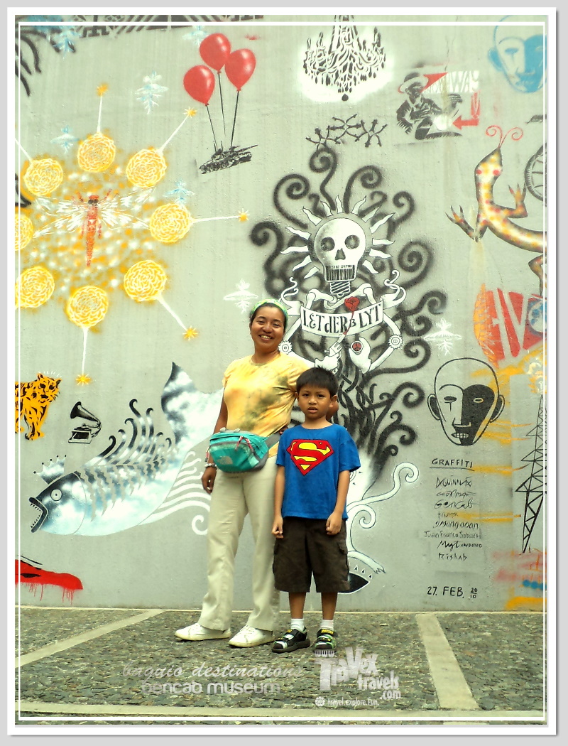| Haiz, the "Journeying Pinay" and her son at the Bencab Museum. (Backdrop: Baguio graffiti) |