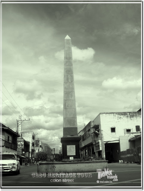 | The obelisk marker at Colon Street in Cebu signifies its historical root as the oldest street established in the Philippines. |