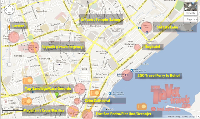 | A Cebu map with different Cebu tourist spots on it. |