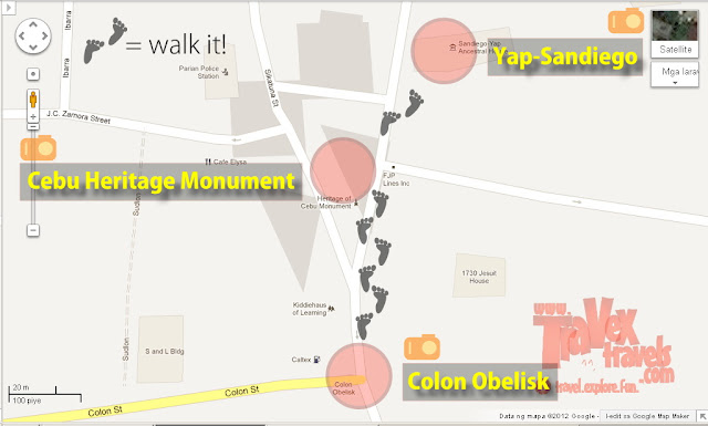 | Colon Obelisk-Cebu Heritage Monument-Yap-Sandiego walk tour map. |