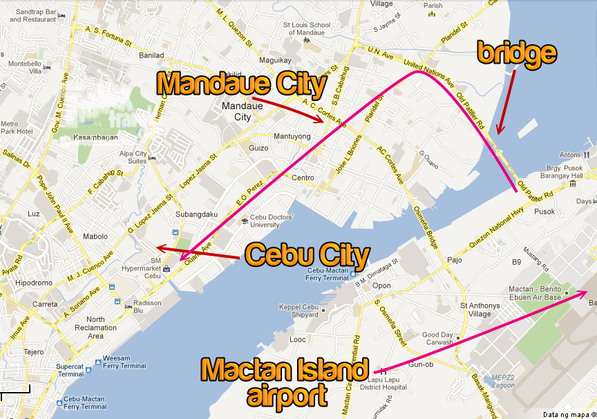 | Route from Marina Mall in Cebu to Mandaue City passing through Marcelo Fernan Bridge |