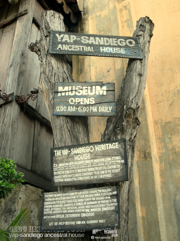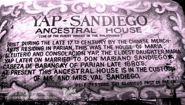 The Yap-Sandiego Ancestral House was a home built by the couple Maria Florido and Don Juan Yap who had three children. They were Maria, Eleuterio and Consolacion. When the eldest daughter Maria Yap married Mariano Avendano Sandiego, a cabeza de barangay, the house became an activity center. As time passed by, this old architectural building was handed down to Val Manciano Sandiego and his wife Ofelia. Until now, the house is still fully standing on its ground and eventually it was converted into a museum.