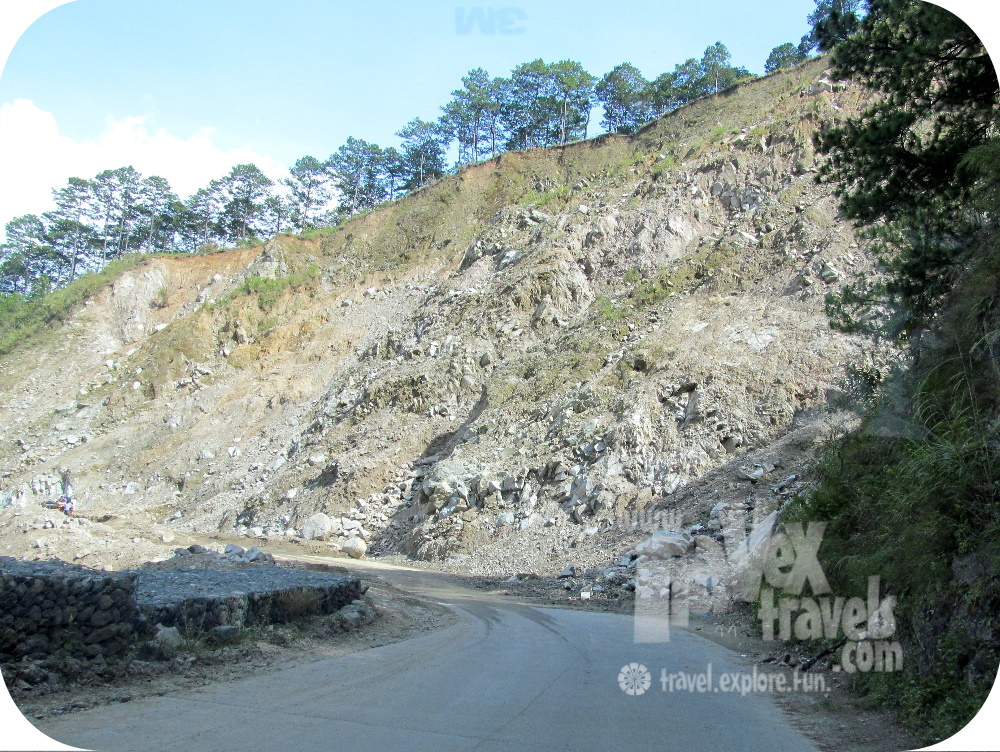 | Unstable mountain slope along Ambuklao Road. |