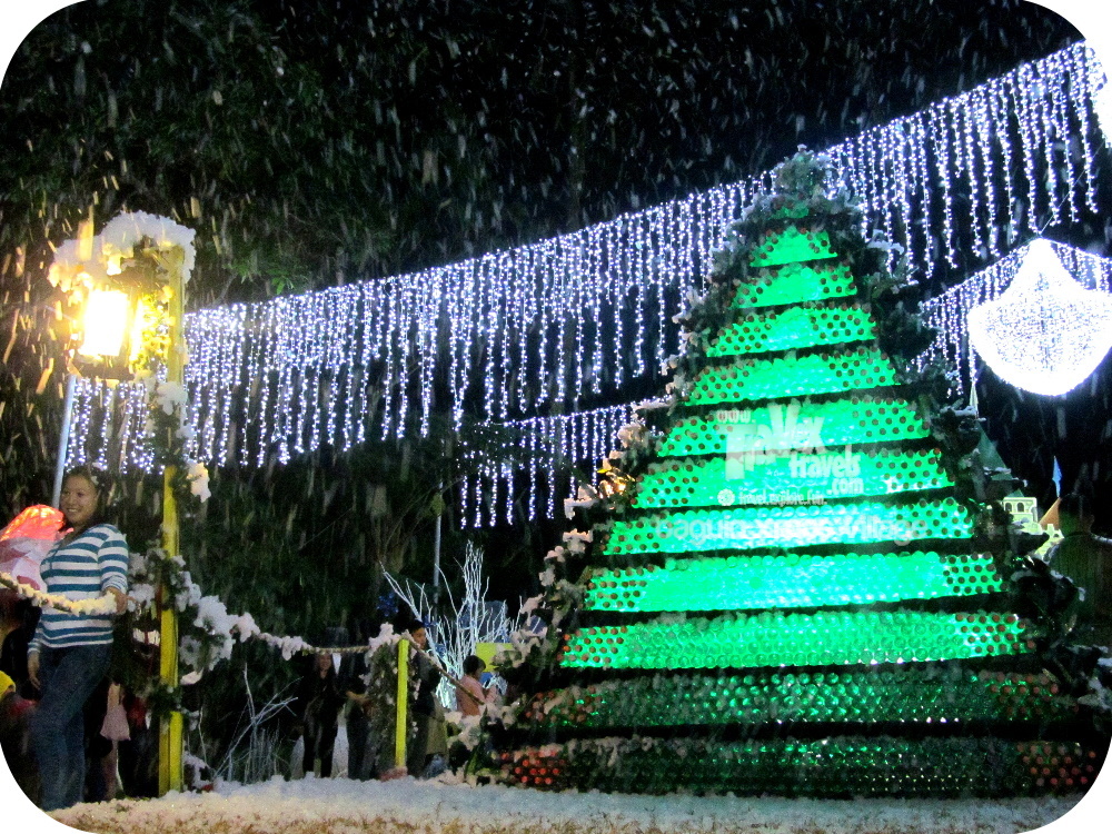 Recycled bottles make up a Christmas tree in this popular limited-time theme park of Baguio.