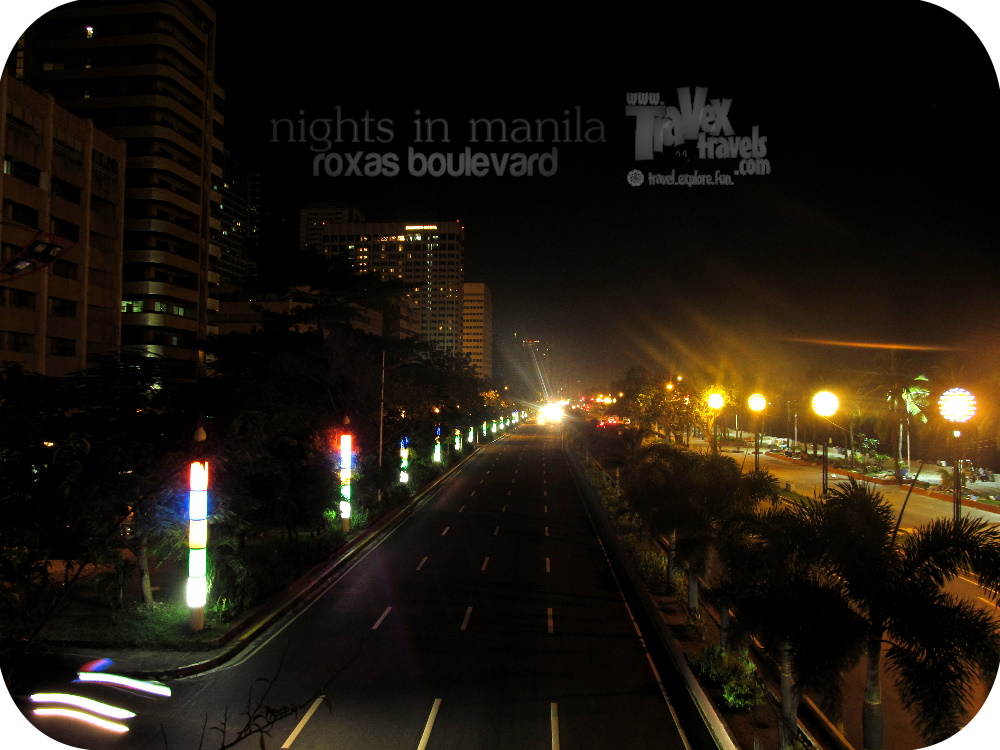 Roxas Boulevard near Manila Bay at night.