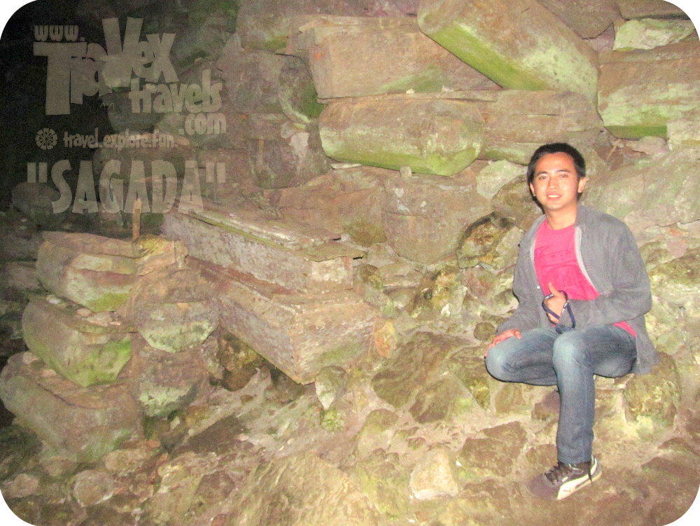 | Beside me are the wooden coffins inside Lumiang Cave, Sagada. |