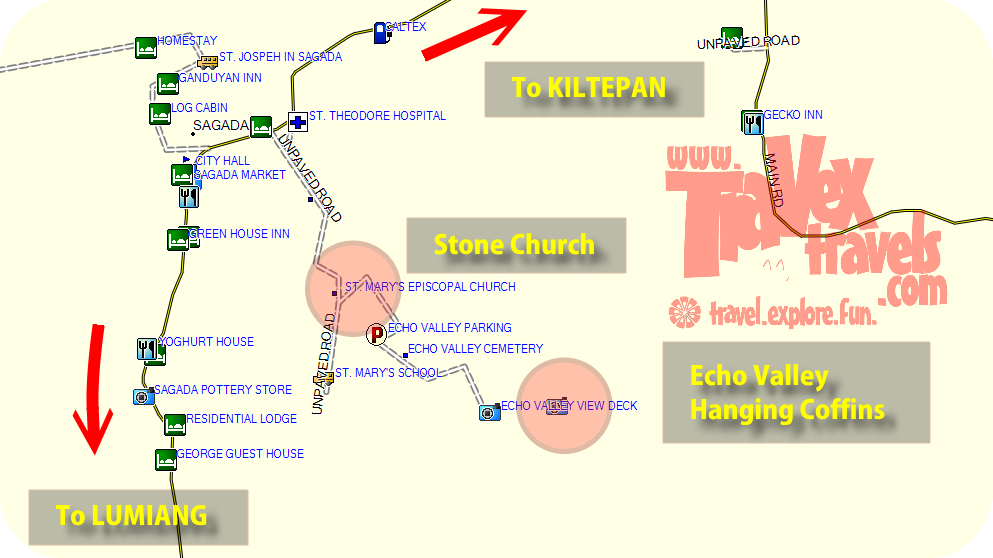 The way to Echo Valley where the up-close Hanging Coffins were located means you have to go first at the back of the Stone Church, reach the stairs that leads somehow to a retreat house, go left by following the sign where “To Echo Valley” was painted and see the cemetery. It was a walk tour right after a bus ride so we did make a short rest at their graveyard.