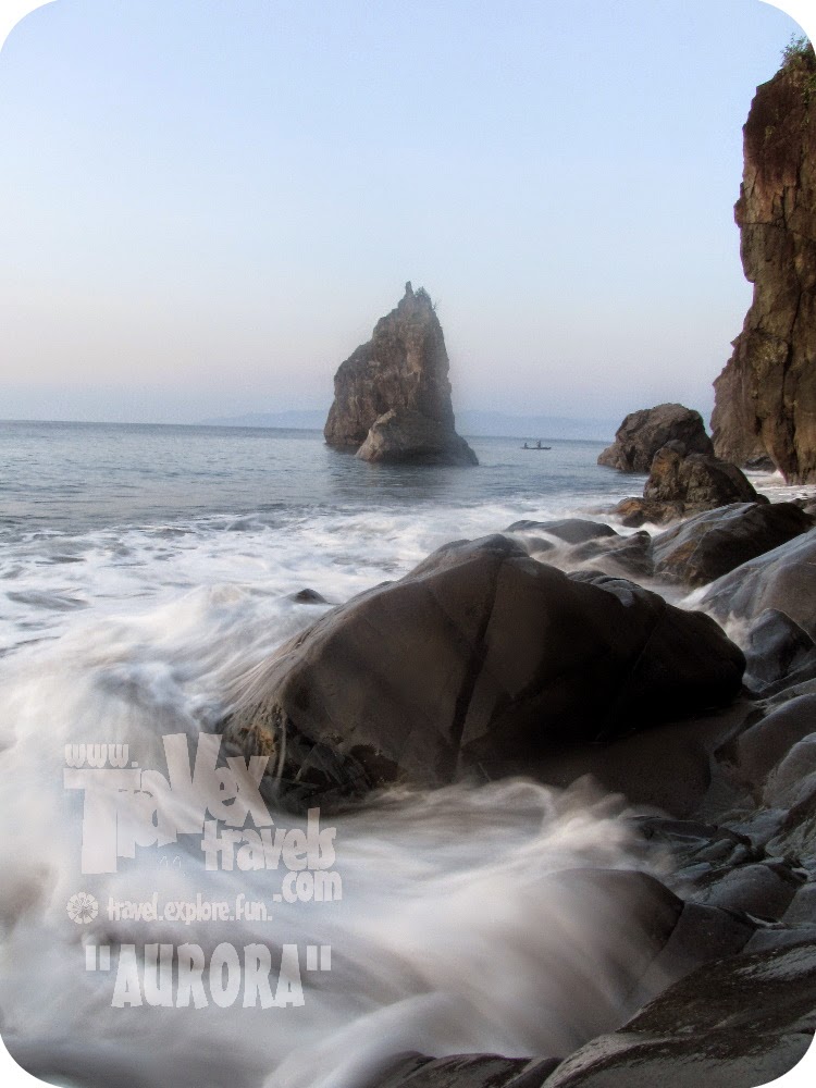 | Waves, rocks and sunrise in one of the most beautiful beaches in Aurora--Ampere Beach, Dipaculao. |