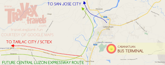 Exit of TPLEX, go all the way to Science City of Munoz, then San Jose City,