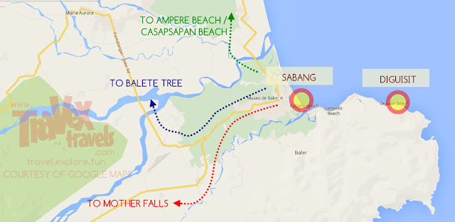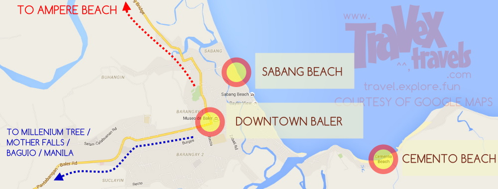 | Location map on how to go to Baler, Aurora from Baguio or Manila |