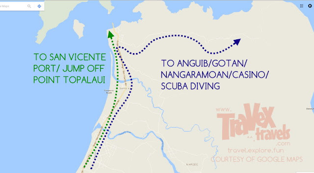 If via private car, you can directly go to Anguib Beach. From downtown, go to junction that separates the road that leads to San Vicente port and the road that goes to Anguib. There are guards in the junction or along the road that charges you environmental fee before you are allowed to get inside.