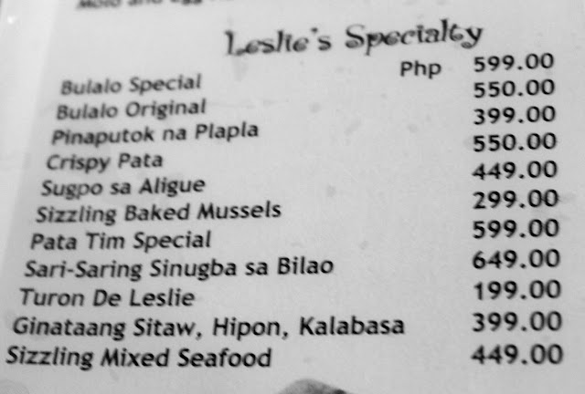 Leslie’s restaurant is has a nice woody ambient inside. In some occasions, there are local “harana” singers who will serenade you while eat. We seated inside the restaurant because the seats with an overlooking view outside were all already occupied.