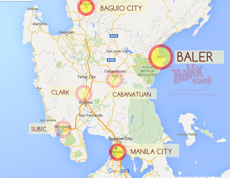 Location map on how to go to Baler, Aurora from Baguio or Manila