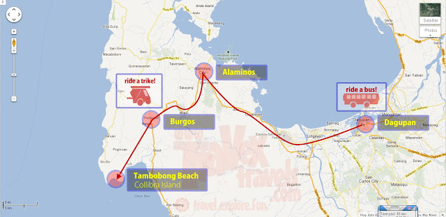 Map going to Tambobong Beach in Dasol, Pangasinan from Dagupan.